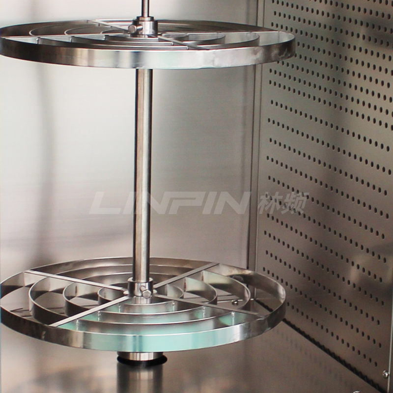 • 試樣轉(zhuǎn)盤(pán):兩層不銹鋼轉(zhuǎn)架(可根據(jù)客戶要求定制隔板樣品架)
